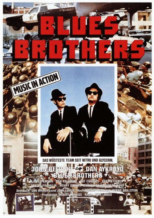 Doch alle Welt ist hinter ihnen her! BLUES BROTHERS ist der Titel des amerikanischen Musik-Slapstick-Films mit der bisher noch in keinem Kinostreifen vereinten Starbesetzung aus der Blues-, Rhythm- und Gospel-Szene: Aretha Franklin, Ray Charles und James Brown singen nicht nur in dem großen Unterhaltungsfilm des Regisseurs John Landis, sie spielen auch kleine Chargenrollen in dieser Geschichte um die Neugründung der Starband „The Blues Brothers“.